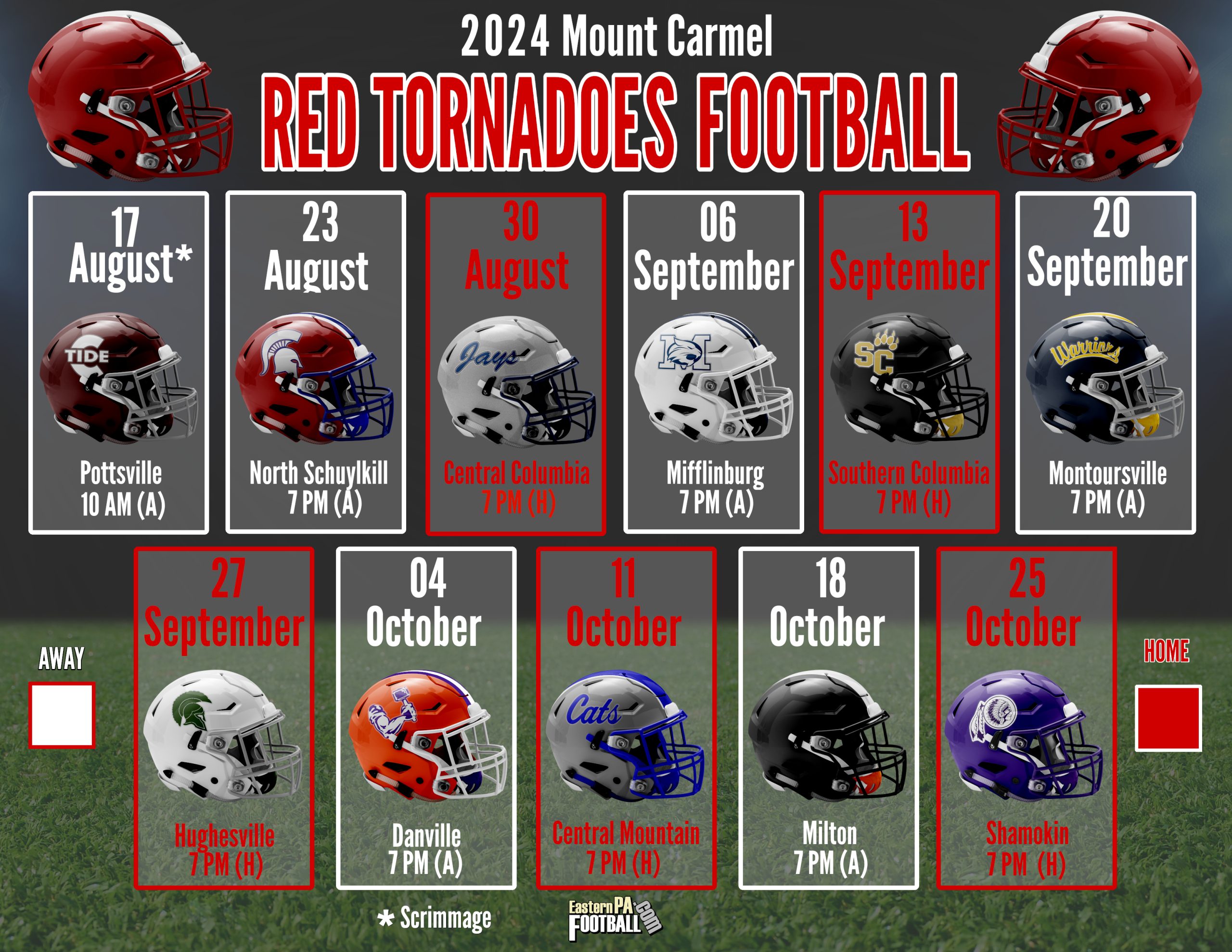 Offense: Offensively the Big Red return four offensive linemen (Shimko, Herb, Spears, Delaney) along with their all-state running back Luke Blessing. Mt. Carmel area should have great speed at the WR position (Balichik, Adams, Delaney, Morgante) to go along with their upcoming QB Gavin Marshalek. They have a stable of capable backs in Blessing, Karycki, Kimsal, Klokis, & Dietz to go along with Al Bailey, a versatile H back.