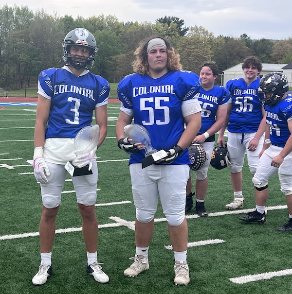 Both defenses settled down until the third quarter when the Colonial Team cracked the scoreboard again. Striba hit Rizzuto for the 62-yard touchdown pass on fourth down and Scharper’s kick put them up 14-12 with 6:25 left in the third quarter.