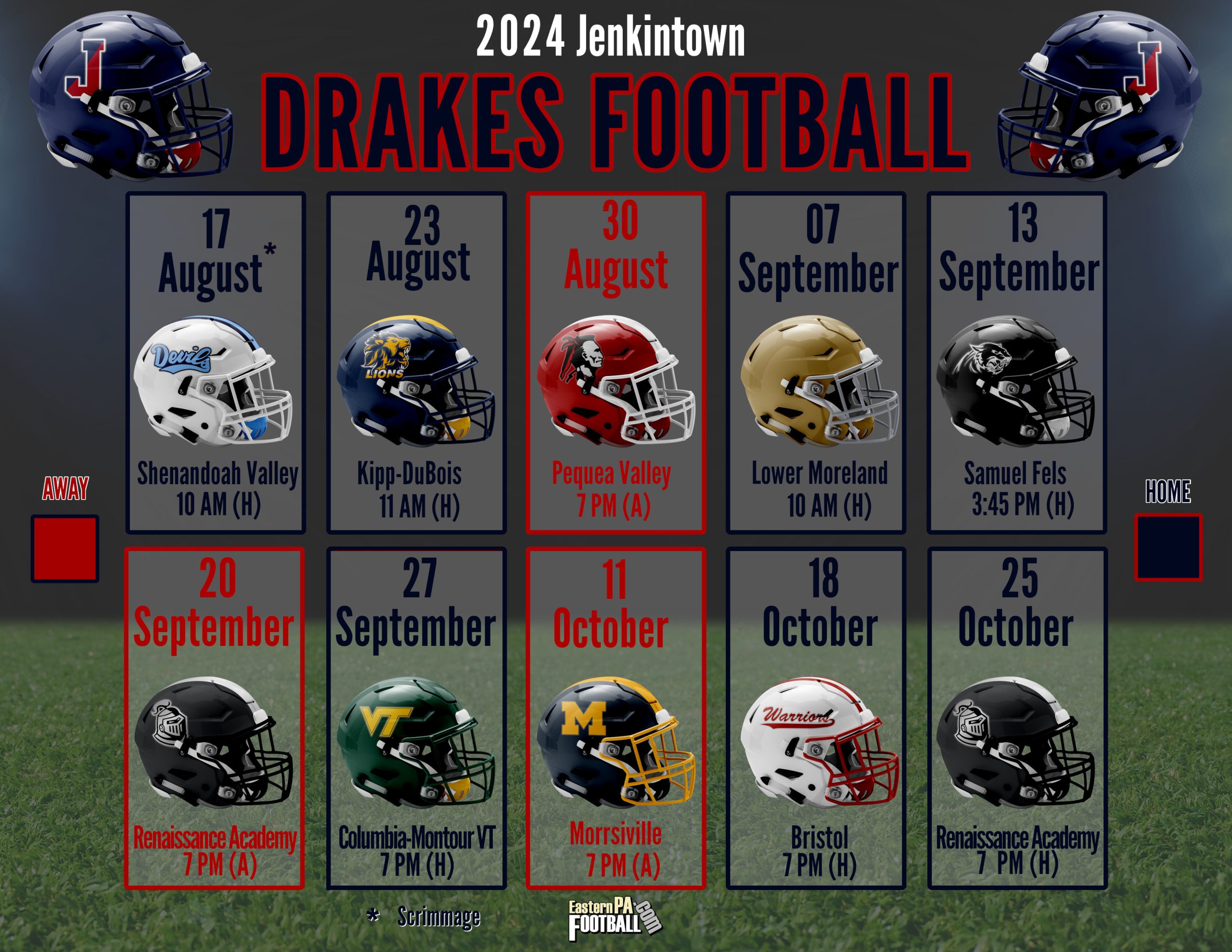 10/13 @ Renaissance Academy Charter* (1A) 7:00 pm W 29-14