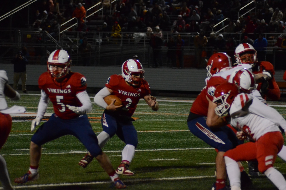 A miscommunication during a pitch on second down resulted in a loss of 13 yards, and Troy took a few back on the next play before lining up to punt. Chimics’ kick was brought back to the Troy 36, and Riverside’s offense trotted back out. Using his arm and his legs, Taddonio broke off 12 yards total on two of the next three plays, giving the Vikings first-and-10 at the Troy 24.